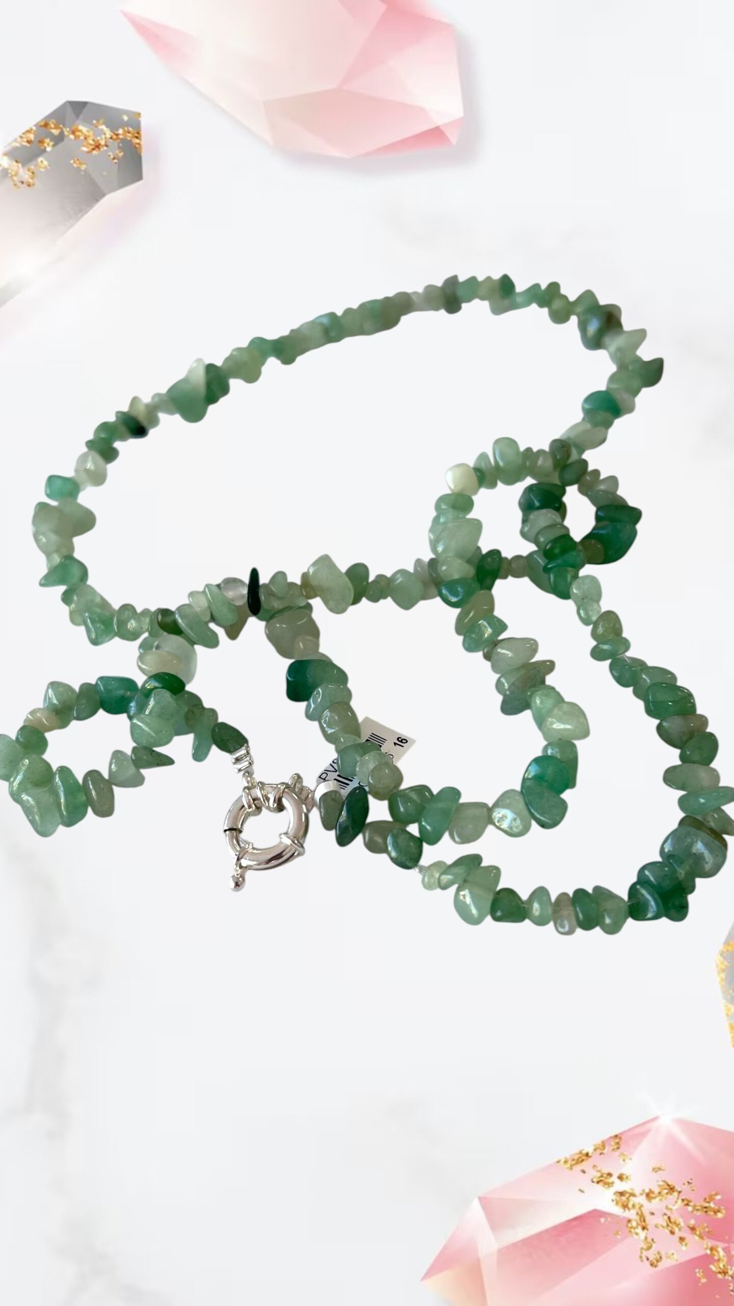 Un collar imponente y lleno de presencia que resalta la fuerza natural del cuarzo verde escallado en un formato XXL.