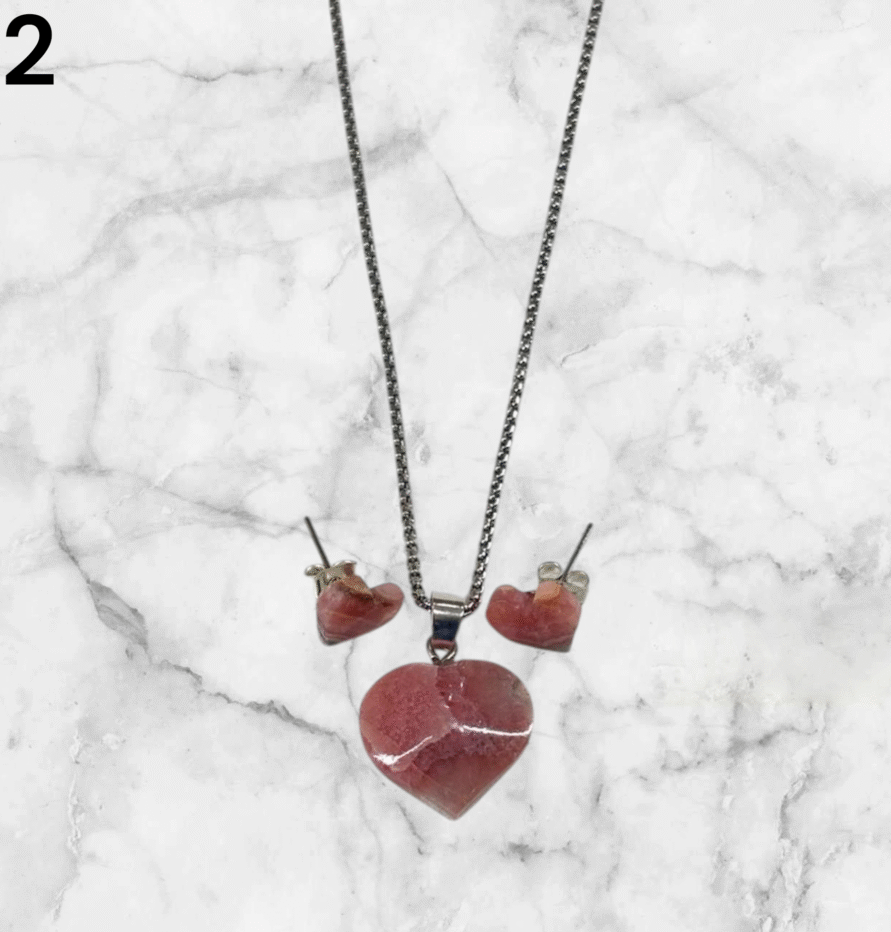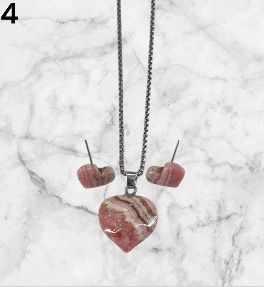 Conjunto Rodocrosita Dije y Aros en forma de Corazón