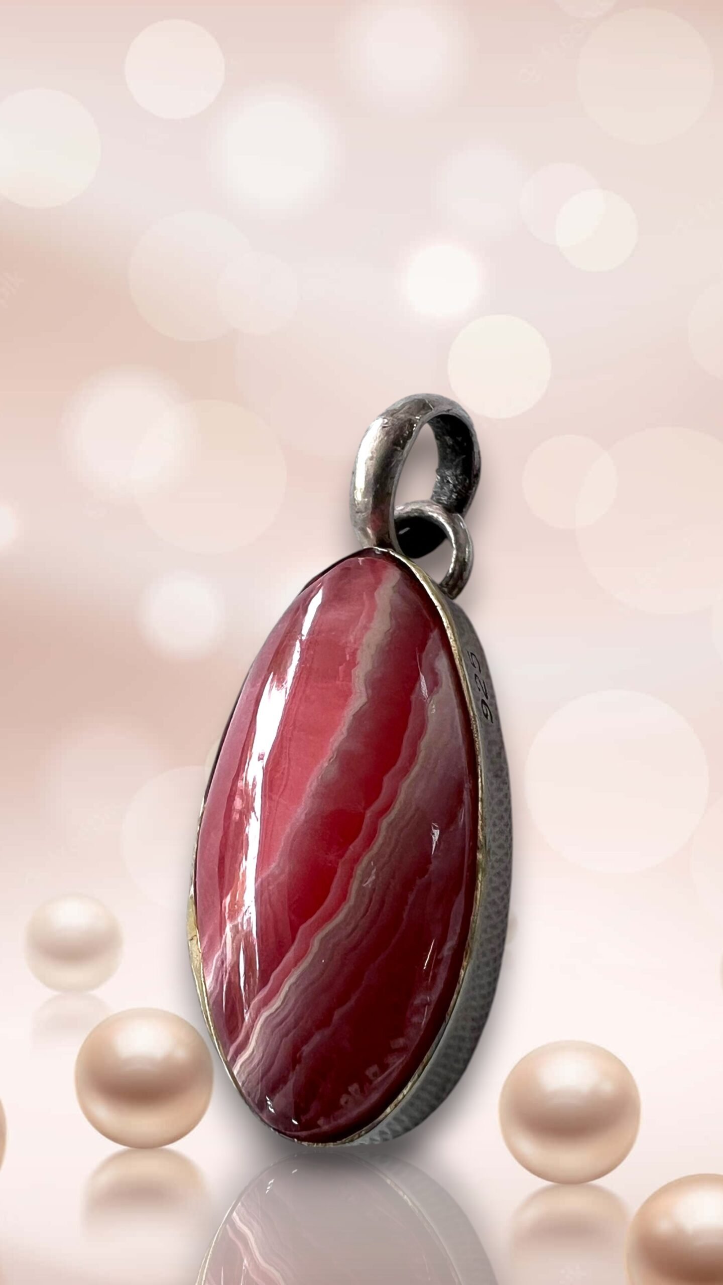 Un dije elegante y profundamente cautivador que destaca la belleza pura de la rodocrosita en su máxima expresión.