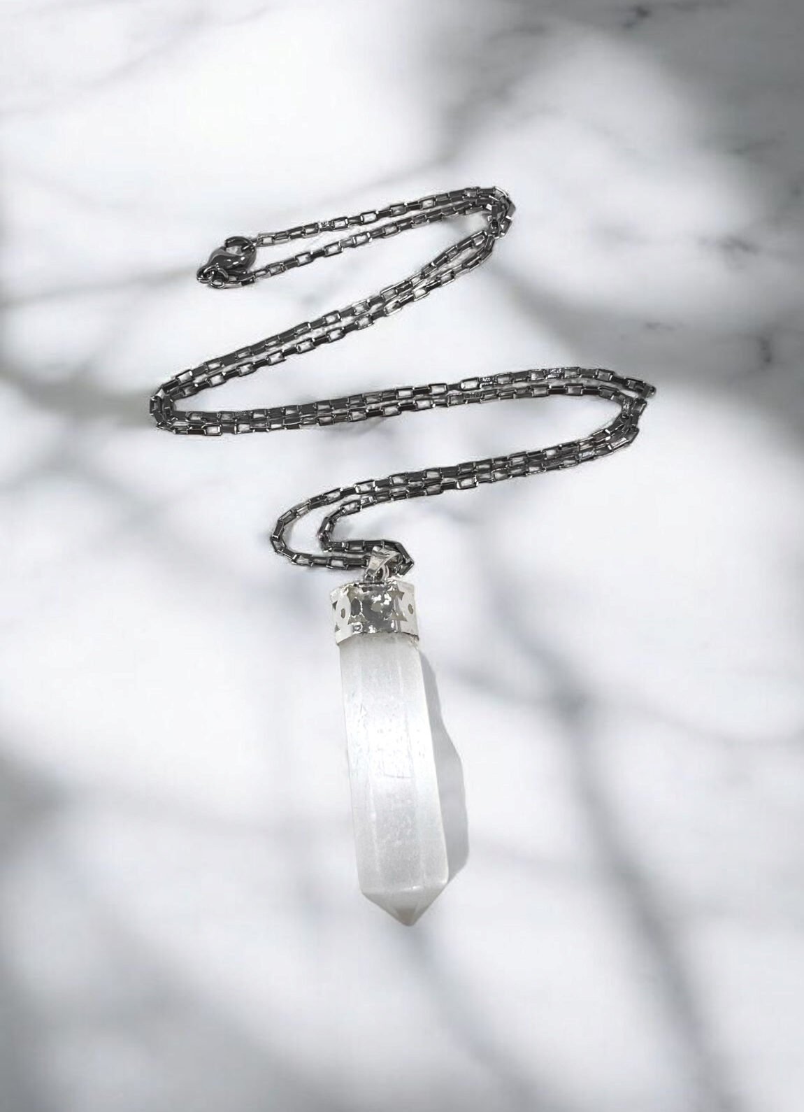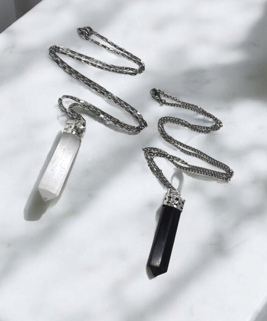 Dije de Selenita y Shungita puntas de piedra naturalDije de Selenita y Shungita puntas de piedra natural