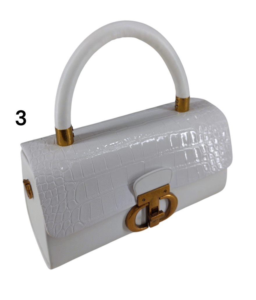 Mini Bag blanca con textura de Cocodrilo , confeccionada en PU de alta calidad. su diseño compacto y moderno eleva cualquier look, perfecta para ocasiones especiales o para dar un toque elegante a tus outfit.