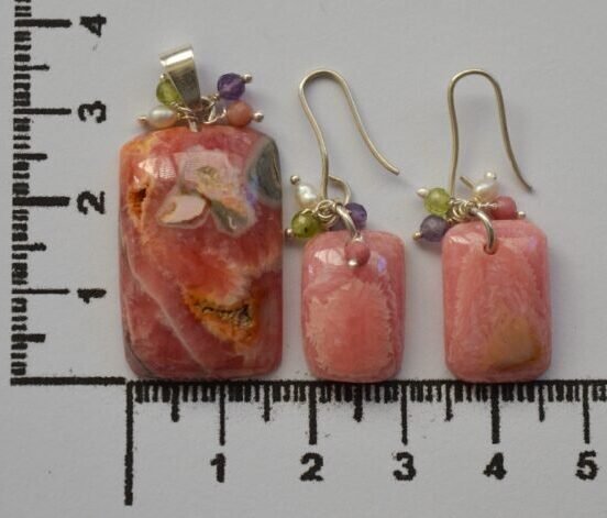 Set de Rodocrosita en plata con detallesSet de Rodocrosita en plata con detalle de chispita